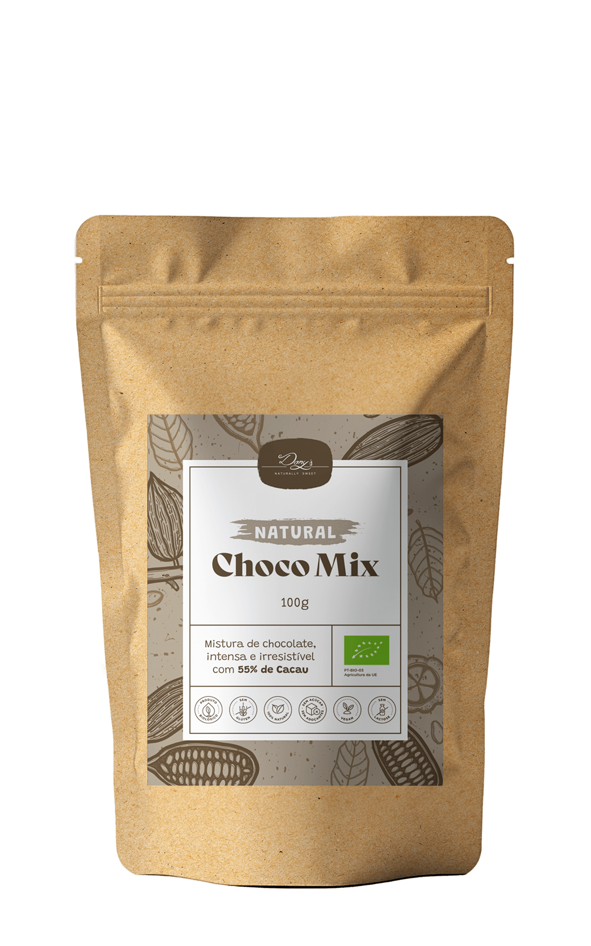 *Ingredientes de Origem Biológica:  Tâmara*, Manteiga de Cacau*, Pasta de Cacau*, Cacau*. 55% de Cacau