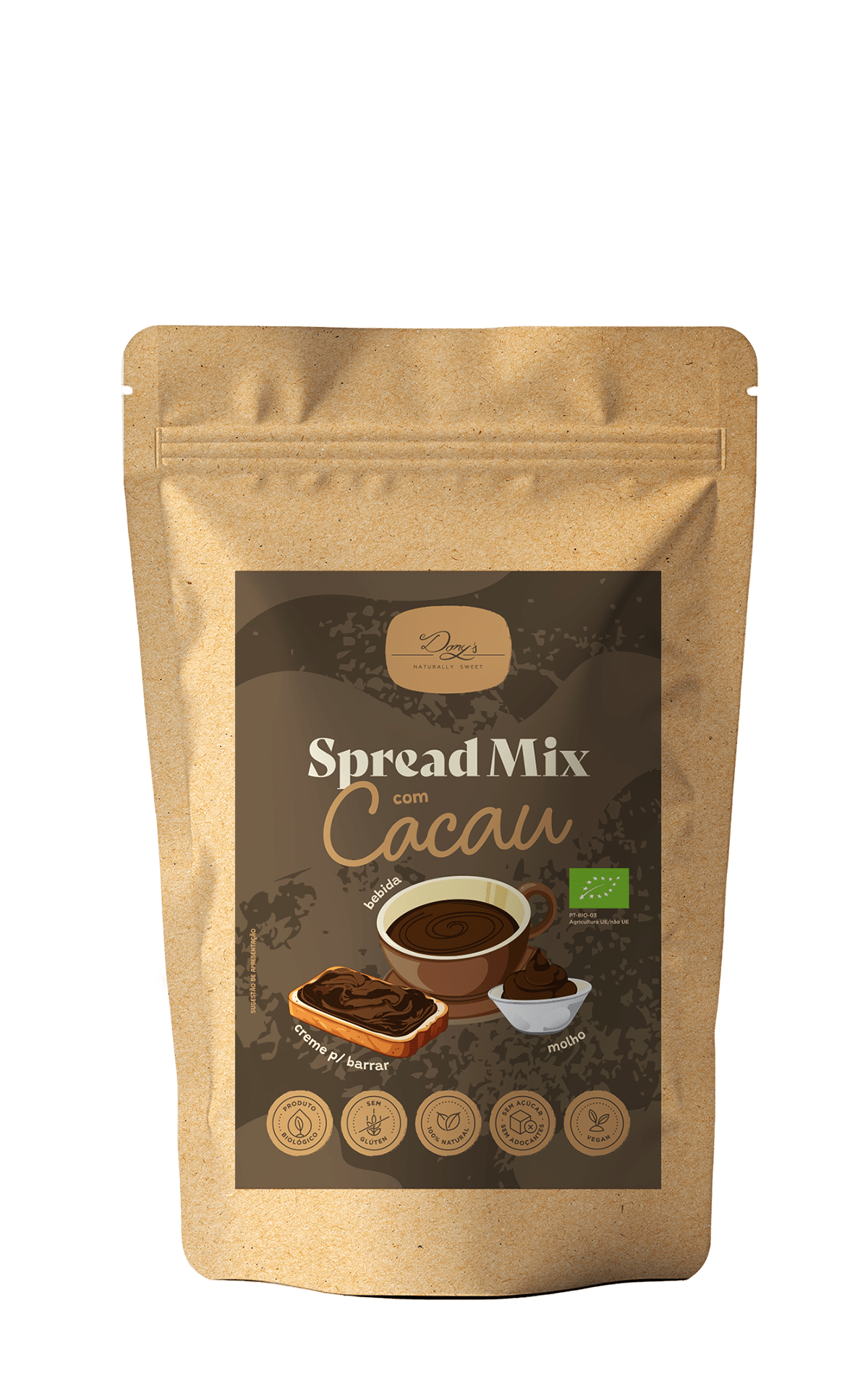 Cacau e Avelã, a combinação perfeita, de fácil preparação (é só adicionar água) para confecionar Creme para Barrar, Molho e Bebida vegetal. Sem Açúcar e Sem Adoçantes é Adoçado com Tâmara Natural e Contém Manteiga de Cacau prensada a frio, que são Puro Prazer e um Luxo para a Saúde. É rico em Proteínas, Fibras e Esteróis Vegetais Naturalmente presentes, que beneficiam a saúde cardiovascular, reduz o colesterol e inflamação, sendo também um produto ecológico que não requer grandes armazenamentos e consumos de energia.